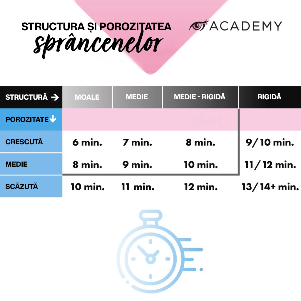 În cele ce urmează, prezentăm un tabel cu timpul de acțiune recomandat; acest tabel a fost creat ținând cont de ambii factori analizați mai sus: porozitatea și structura firului de păr. Nu uitați, totuși, că există mereu și excepții!